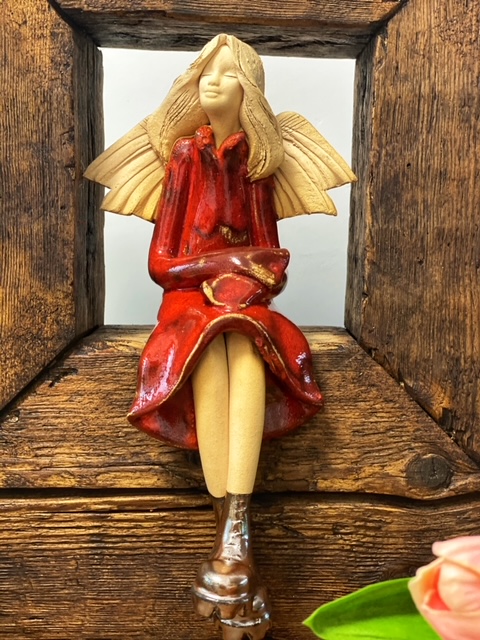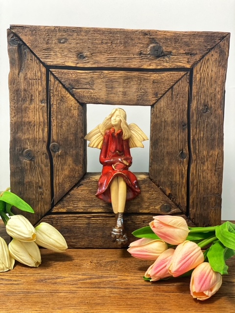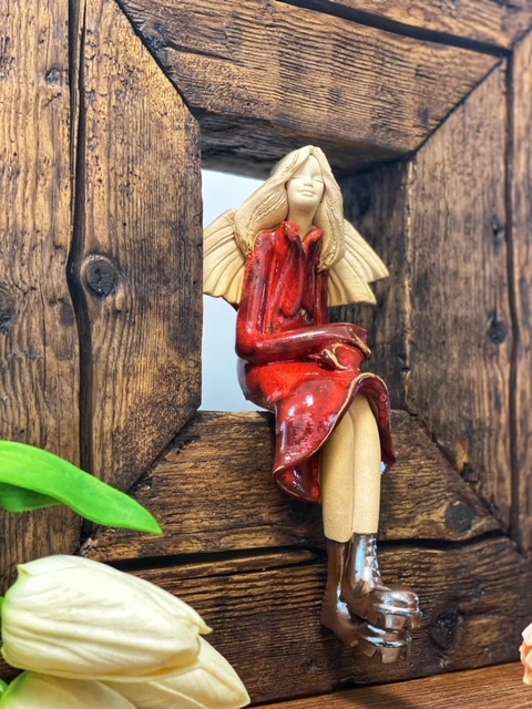 Ručne kresané 100- ročné drevo zo starej stodoly ošetrené včelím voskom proti červotočom. Nádherný ručne prepracovaný, keramický, glazovaný anjel.