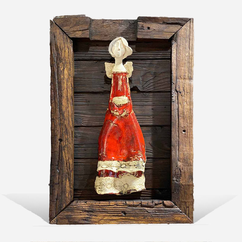 Autorský obraz vyrobený zo 100 ročného dreva.  Keramický anjel je ručne vyrobený, 2 x glazovaný. Krásny bytový doplnok do chaty, chalupy… Máme 3 obrazy z tejto série. Poteší kohokoľvek. Jedinečný kúsok, ktorý nikde inde nekúpite.