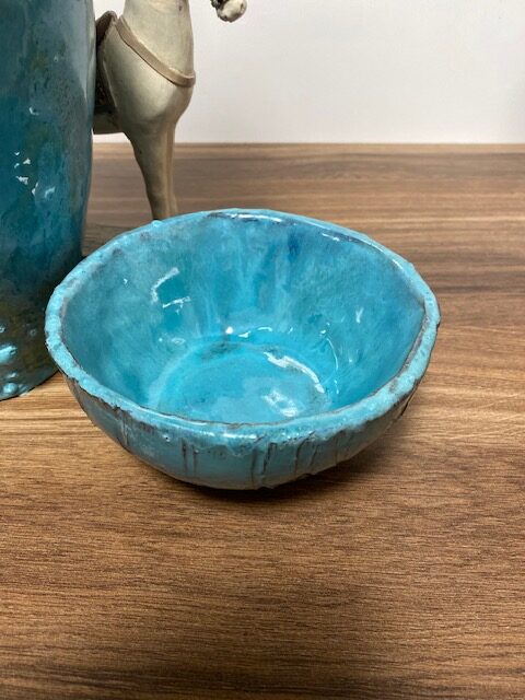 Táto nádherná ručne robená miska  je pravým skvostom pre milovníkov keramiky a jedinečného dizajnu. Svojou živou tyrkysovou farbou a elegantným tvarom pridáva štýl a sviežosť do akéhokoľvek priestoru.