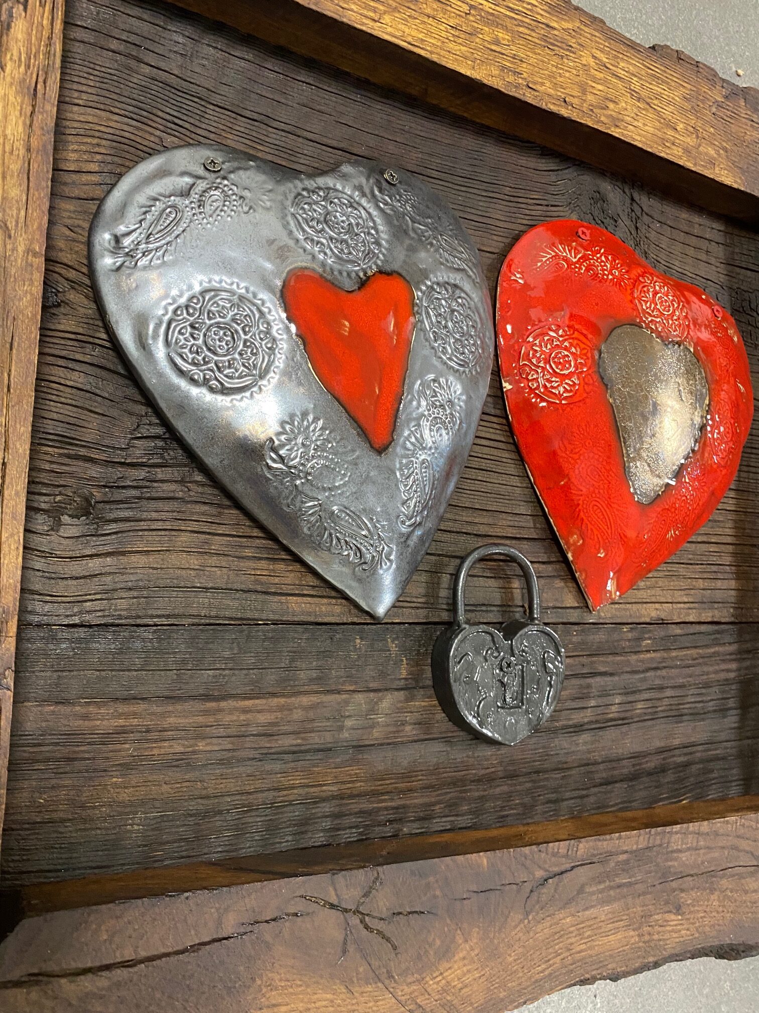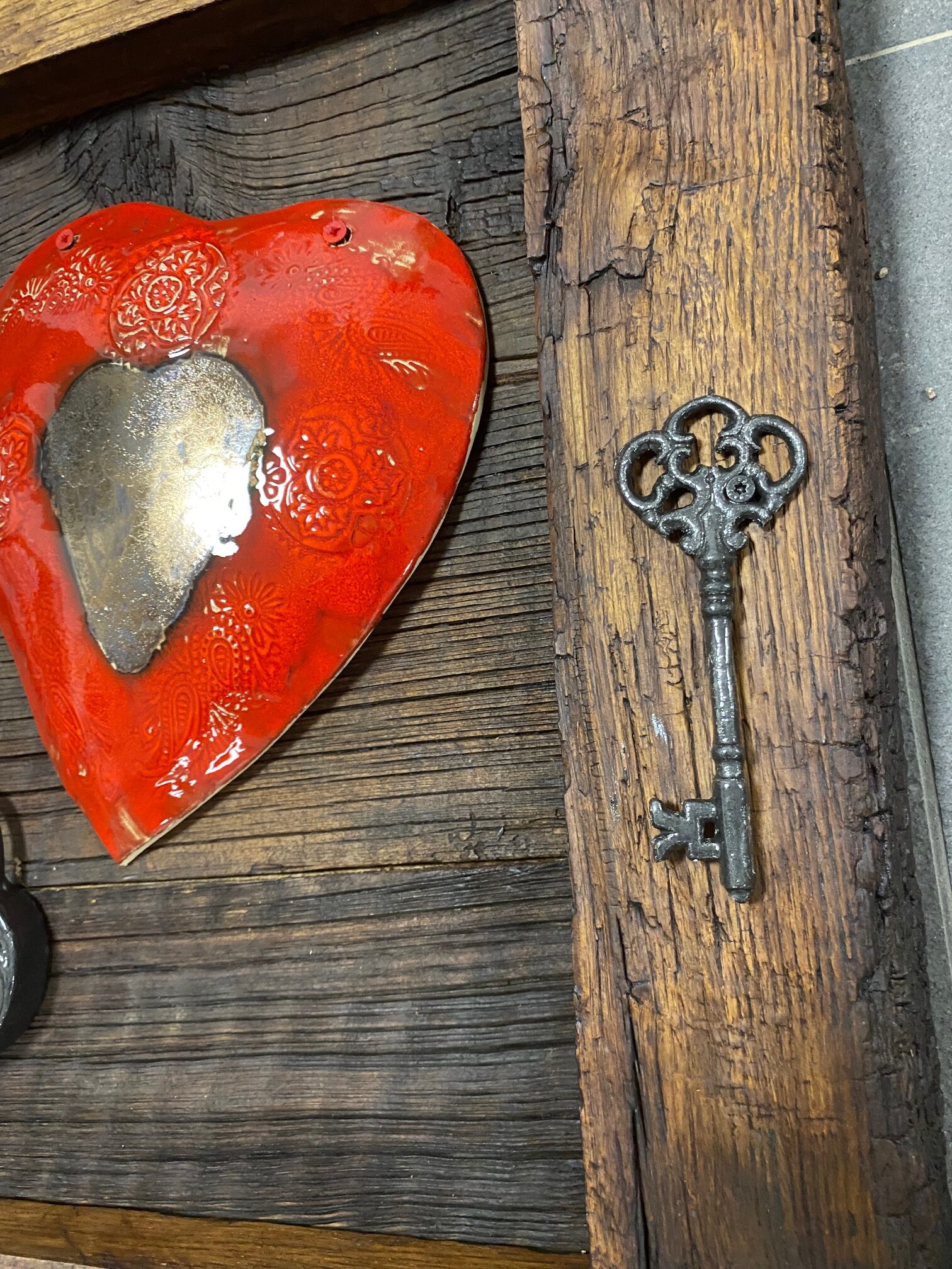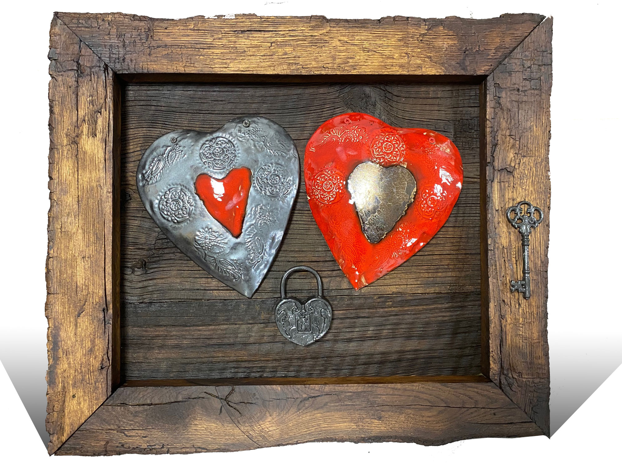 Drevený obraz vyrobený zo 100 ročného dreva namorený proti červotočom a ošetrený včelím voskom. Srdcia sú ručná keramická práca . Každý kus sa môže líšiť a obrázok má informačný charakter pretože nie je možné aby každé drevo bolo rovnaké. Takže budete vlastniť originál , ktorý nemá okrem Vás nikto. Je to štýlový doplnok do domu, chaty alebo len ako úžasný darček.